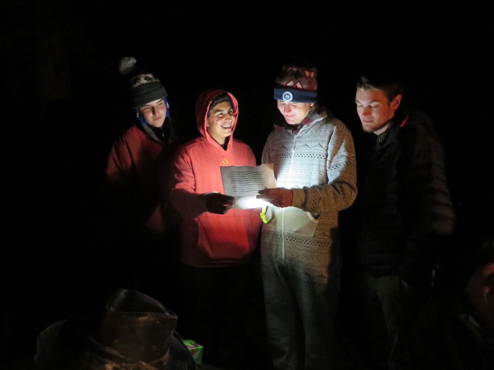 Seniors Alexandre, Piero, Alex, Josh get ready for the hike to Half Dome early in the morning.